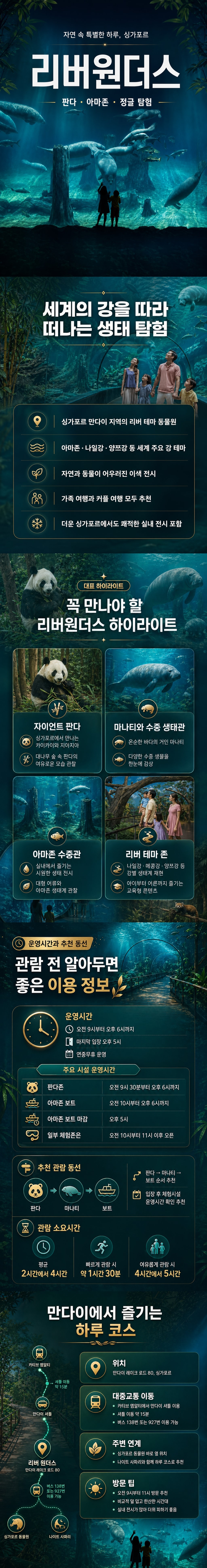 아마존, 나일강, 양쯔강 등 다양한 강을 테마로 자연과 동물이 어우러진 이색적인 전시를 경험할 수 있습니다.